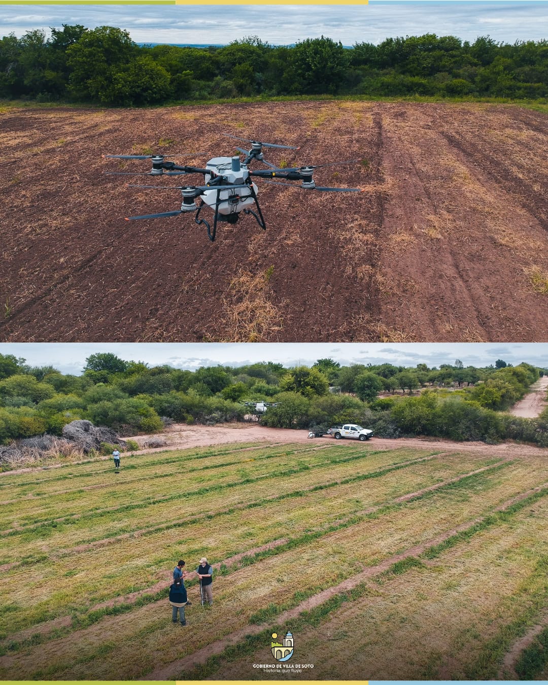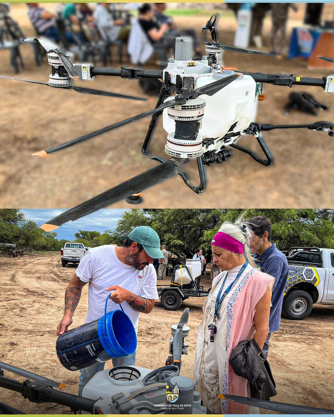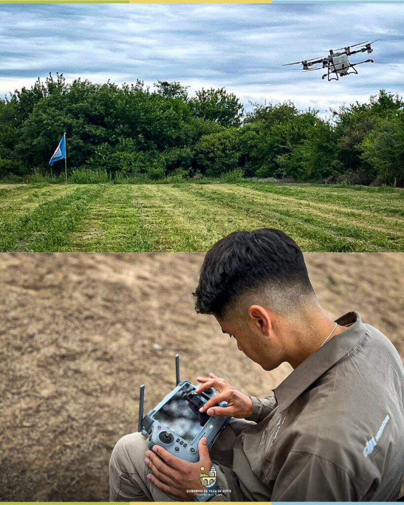 En el Campo Experimental “Los Jotes”, la Municipalidad junto al Inta, realizó una jornada de capacitación sobre agricultura de precisión, donde productores y técnicos locales conocieron de cerca cómo los drones pueden aplicarse a la siembra y pulverización.