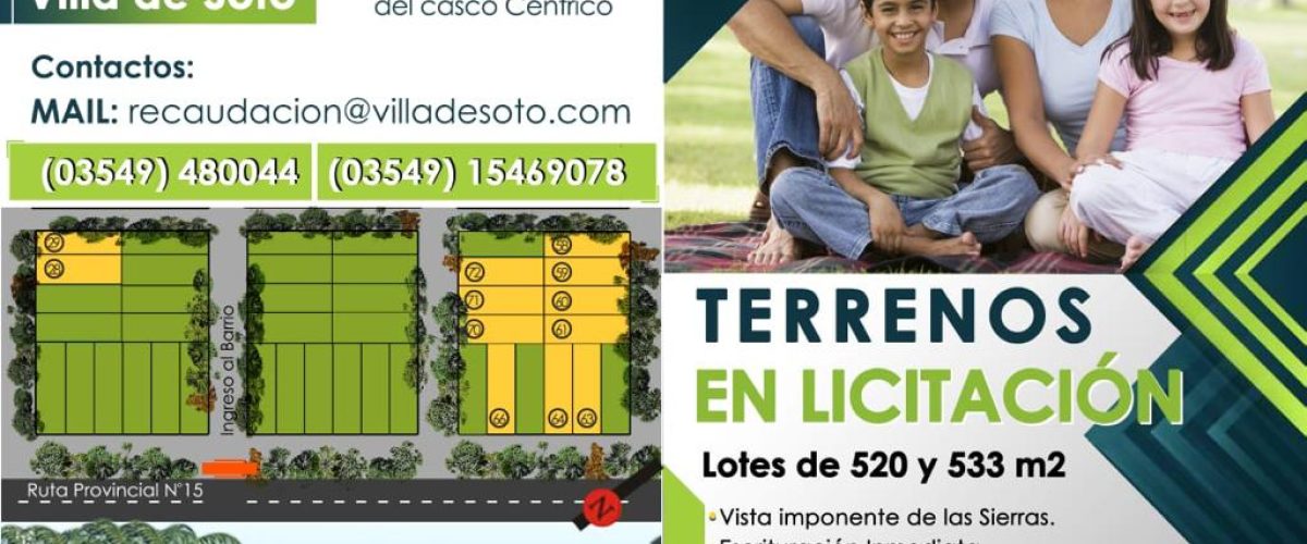 La oportunidad para licitar tu terreno es ahora. La licitación está abierta hasta el 30 de mayo y podes adquirir los pliegos por la Municipalidad. Para mayor información comunícate a los números telefónicos de la imagen.