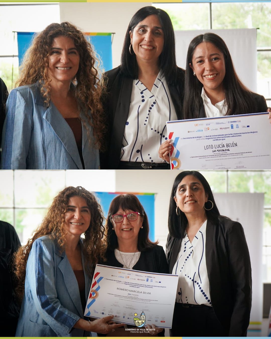 Finalmente, como parte del fortalecimiento institucional, se realizó la entrega de certificados a los egresados de la Diplomatura en Violencia de Género, destacando la importancia de contar con personal y ciudadanos capacitados para el abordaje de estas problemáticas en el territorio.